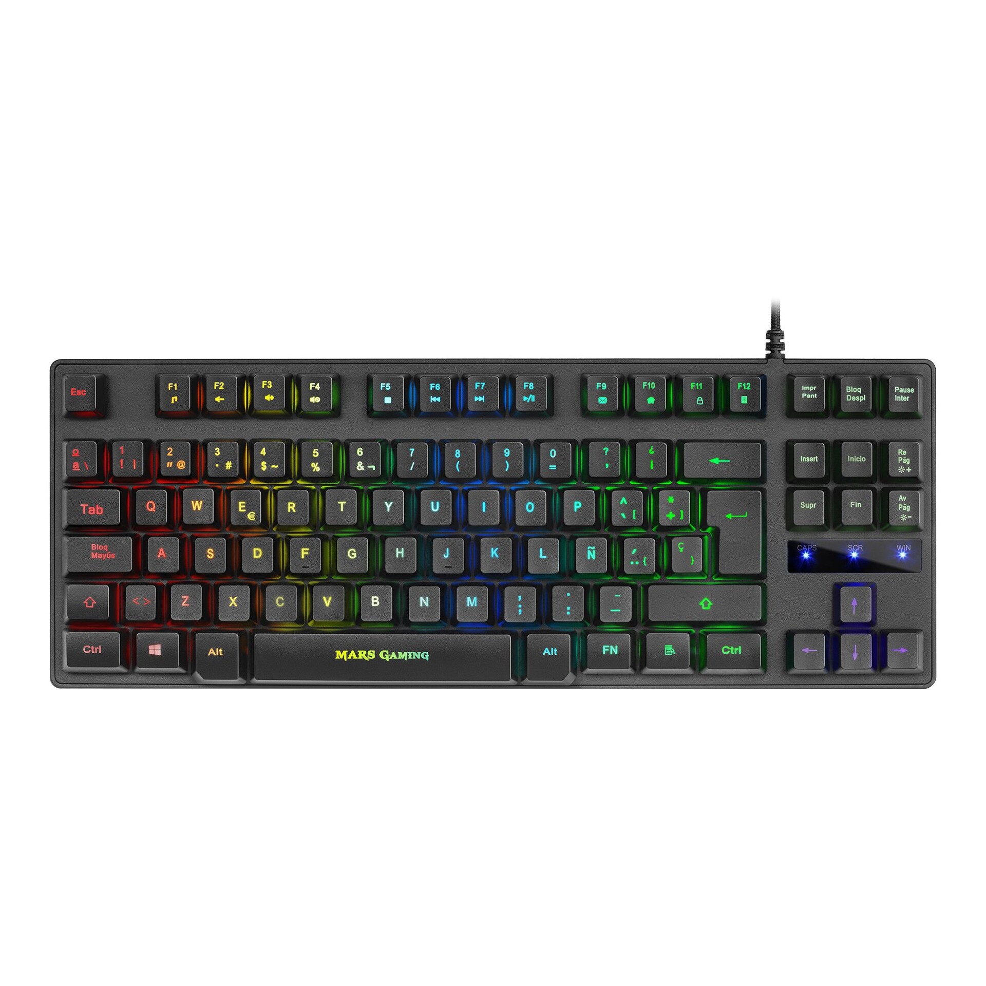 Mars Gaming MKTKL. Forma do factor do teclado: Padrão. Estilo de teclado: Em frente/linha recta. Interface de dispositivo: USB, Interruptor do teclado: Interruptor de chave mecânico, Layout do teclado: QWERTY. Tipo backlight: LED RGB. Comprimento do cabo: 1,5 m. Uso recomendado: Jogos. Cor da caixa: Preto